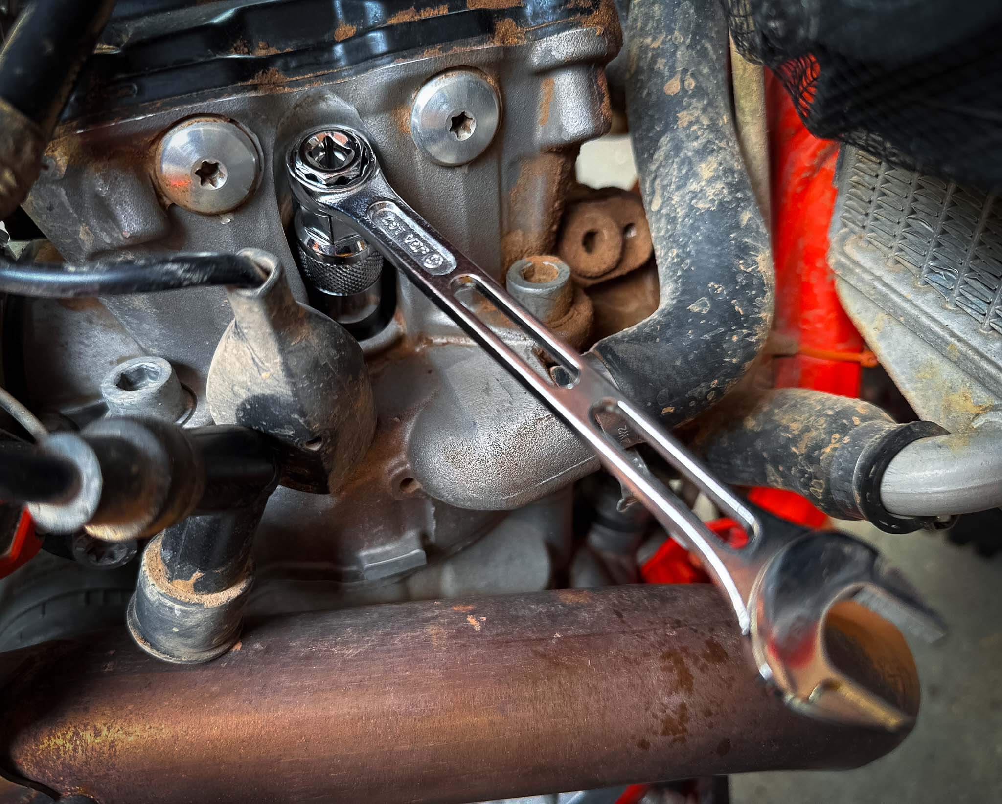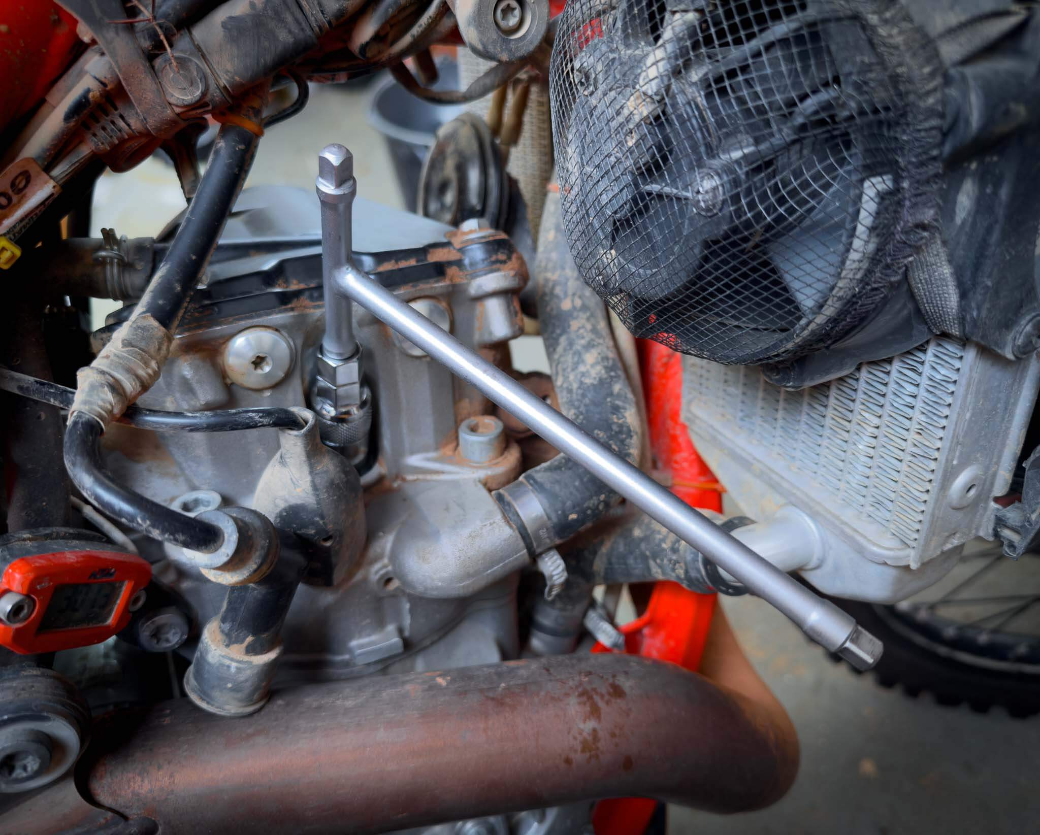 Die richtigen Werkzeuge sind für die Wartung Ihres Hochleistungsmotorrads unerlässlich. Der 14-mm-Zündkerzensteckschlüssel der Rolling Mavericks wurde speziell für die Anforderungen neuerer KTM-, Honda- und Husqvarna-Motorräder mit 14-mm-Sechskant-Zündkerzen entwickelt. Dieses Werkzeug stellt sicher, dass Sie Ihre Zündkerzen auch auf engstem Raum leicht erreichen und austauschen können. Kann mit einer ¼-Zoll-Ratsche oder einem 13-mm- und 14-mm-Schlüssel angetrieben werden.