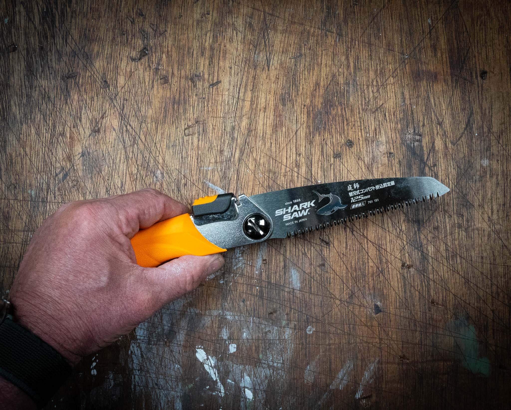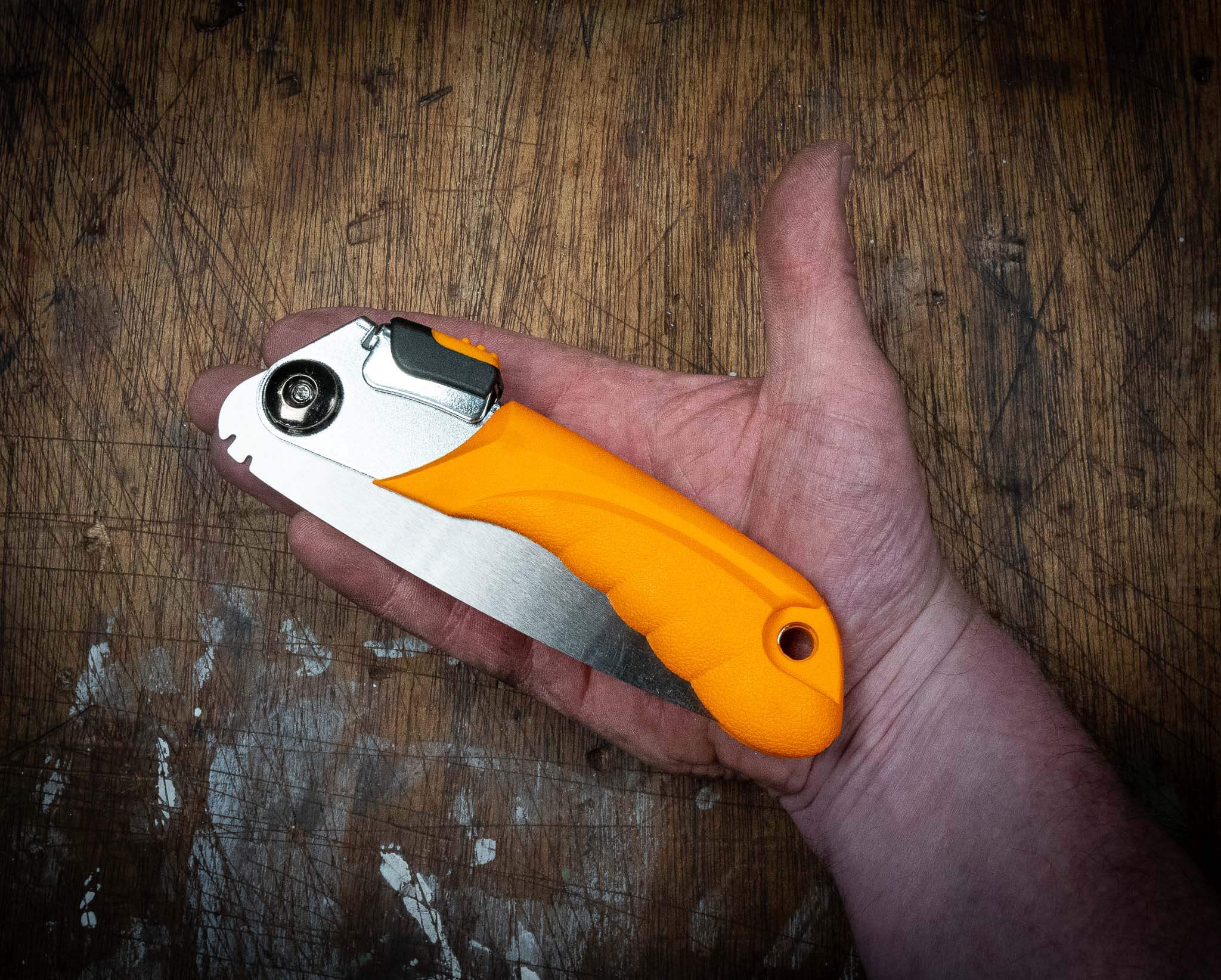 Dieser japanische Schnitt ist sehr praktisch, wenn Sie auf einer Abenteuertour sind und ein umgestürzter Baum den Weg versperrt oder Sie Holz für das Lagerfeuer sägen möchten. Zusammengeklappt ist es nur 125 mm lang und passt in Ihre Hosen- oder Werkzeugtasche