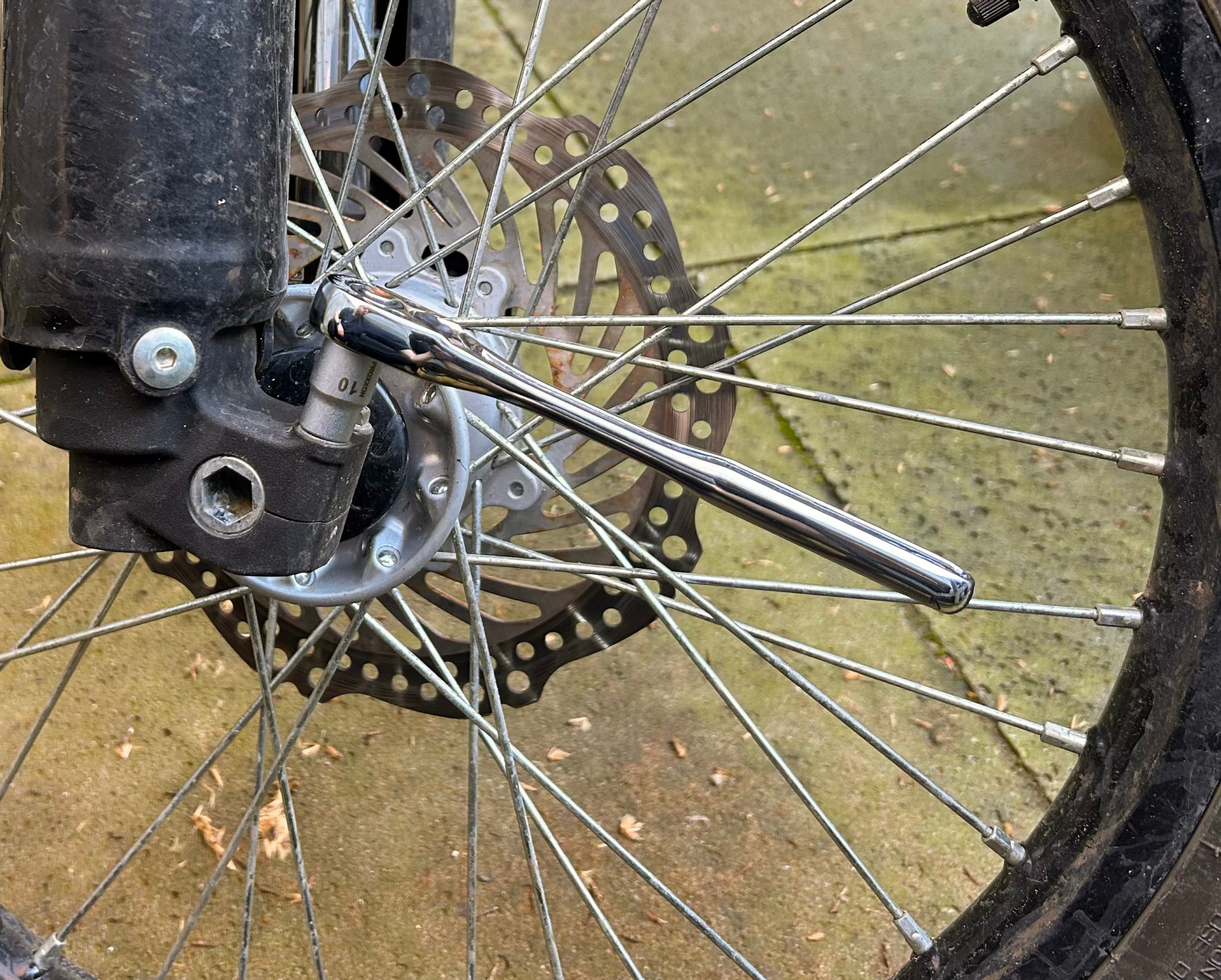 On the trail, this little hook becomes surprisingly useful removing a side stand or center stand springs but also exhaust tension springs, brake drum springs and can even help seat stubborn rubber grommets