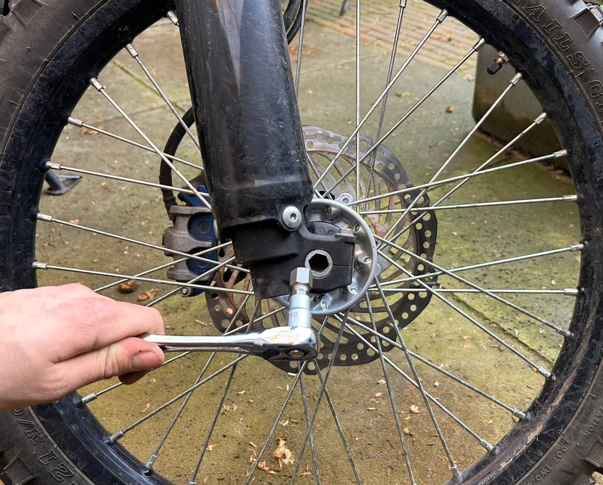 Your overlander Toolkit includes 1/4” sockets but do not do NOT use the smaller 1/4” drive 10mm socket with a 3/8” → 1/4” adapter on your ratchet. You will break that adapter. The torque values on the CRF front axle are too high for 1/4” tooling.