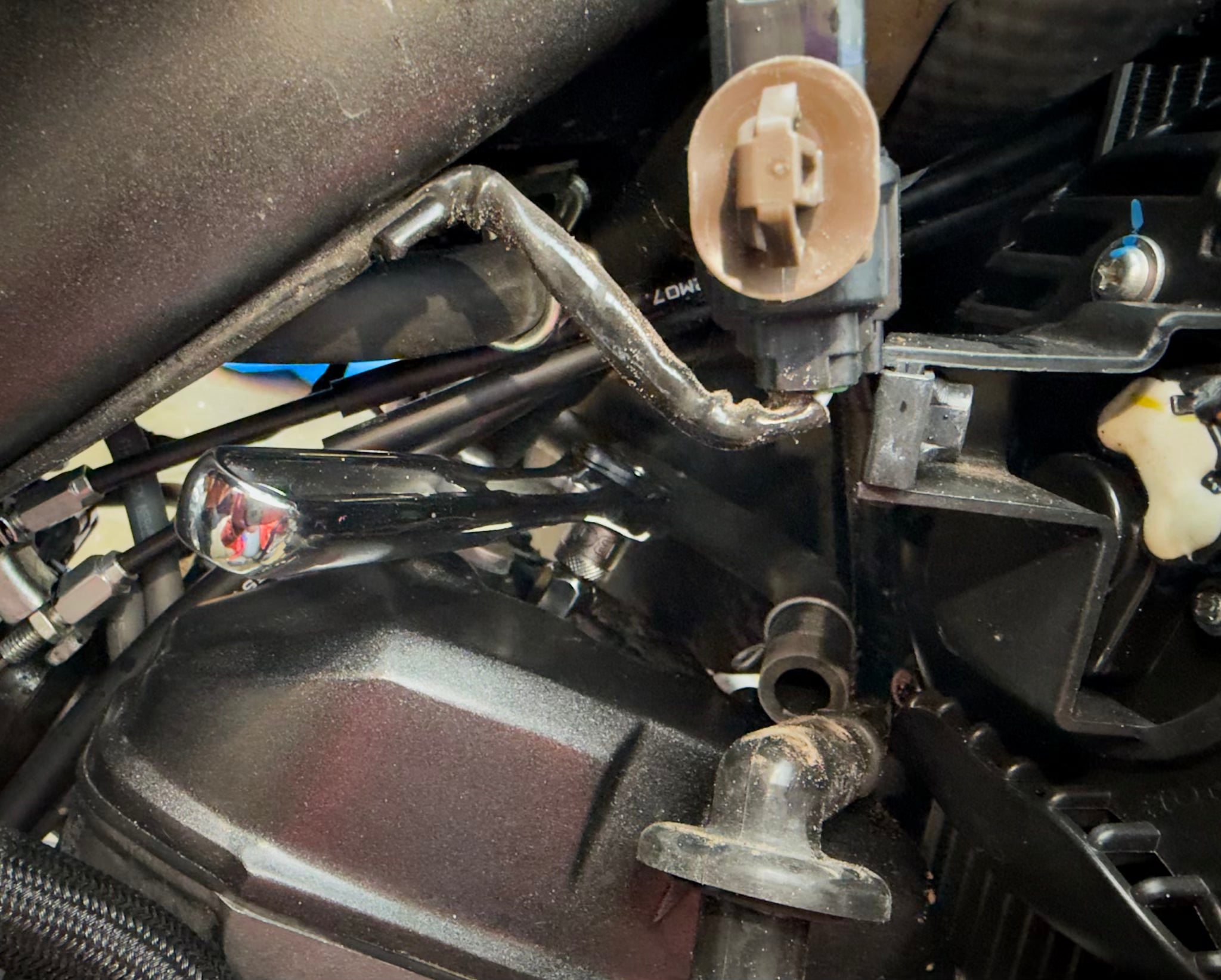 You’ll find YouTube videos where people remove the tank or try to reach the plug past the radiator using long extension stacks. That means unnecessary disassembly and extra tools.