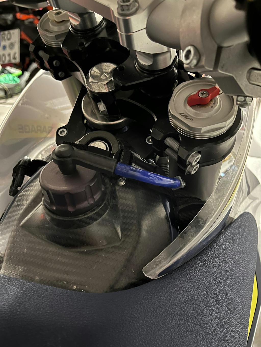Rouler avec des bagages sur le Husqvarna 701, GasGas 700 ou KTM 690, le tuyau de ventilation vertical sur le bouchon de remplissage, situé juste derrière la selle, peut gêner. Il en va de même si vous roulez avec un réservoir plus grand, comme un IMS ou Acerbis, et que vous souhaitez utiliser un sac de réservoir. Le tuyau de ventilation qui sort droit du bouchon de remplissage est une nuisance. Avec un sac de réservoir dessus, vous risquez que le tuyau se plie, ce qui l'empêchera de ventiler. Cela fonctionne également bien sur les réservoirs Acerbis de grande capacité pour dégager la ventilation verticale.