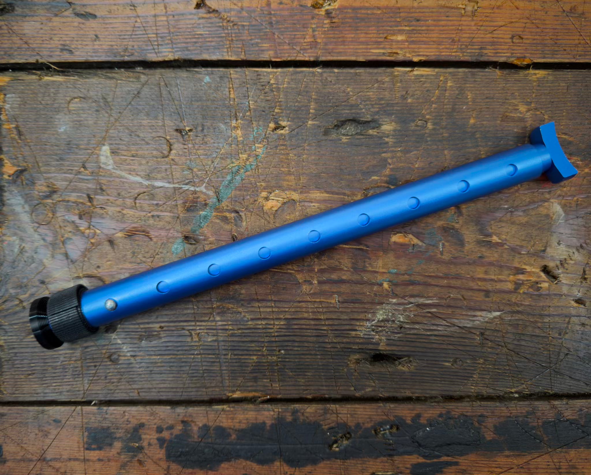 Zewnętrzna rurka o średnicy 18 mm oraz stopa z TPU o średnicy 23,5 mm to najgrubsze elementy. UltraLight Enduro Trail Jack Stand od Rolling Mavericks idealnie mieści się obok moich dźwigni do opon Motion Pro T6 w mojej rolce na narzędzia, zajmując minimalną przestrzeń i nie dodając znaczącej wagi.