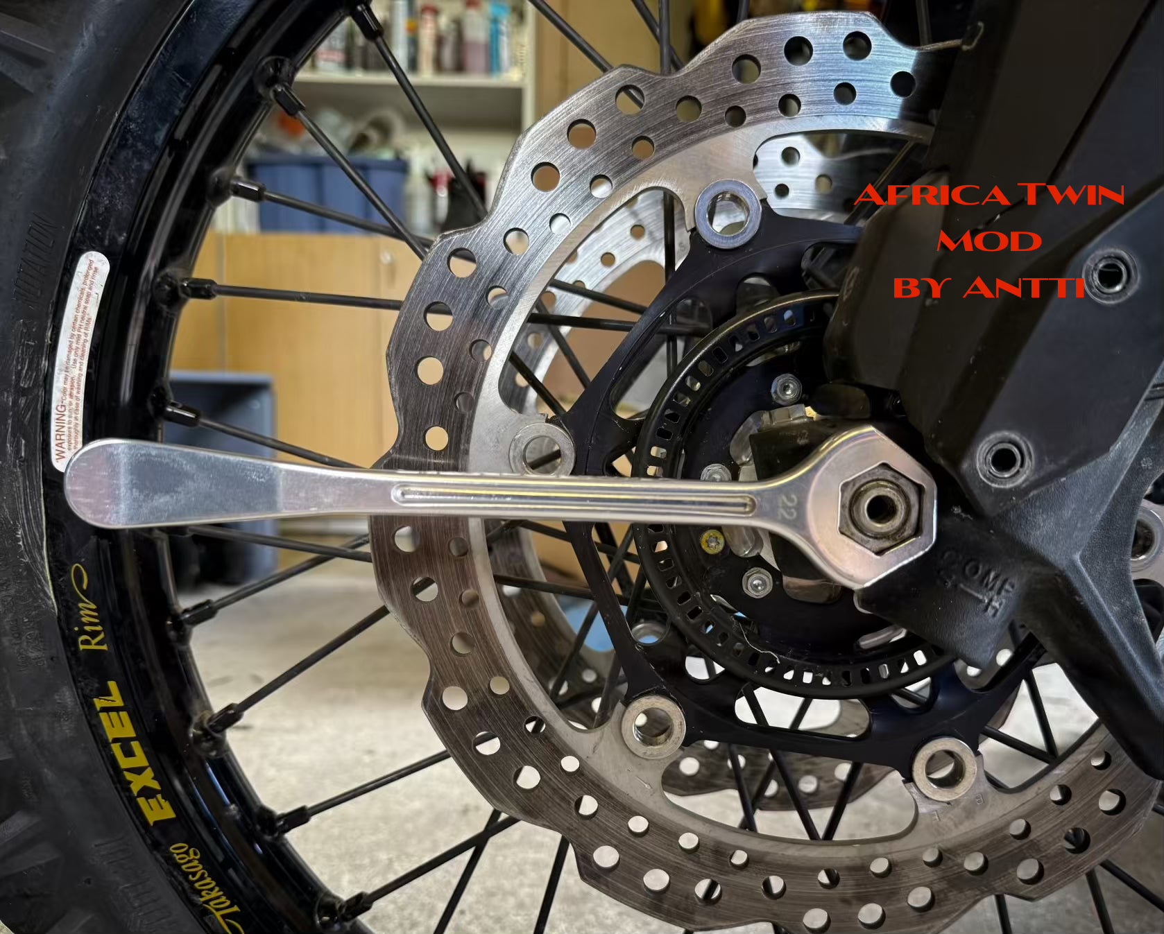 Antti on ADVrider modified his 22mm T6 to fit the front axle of this Africa Twin