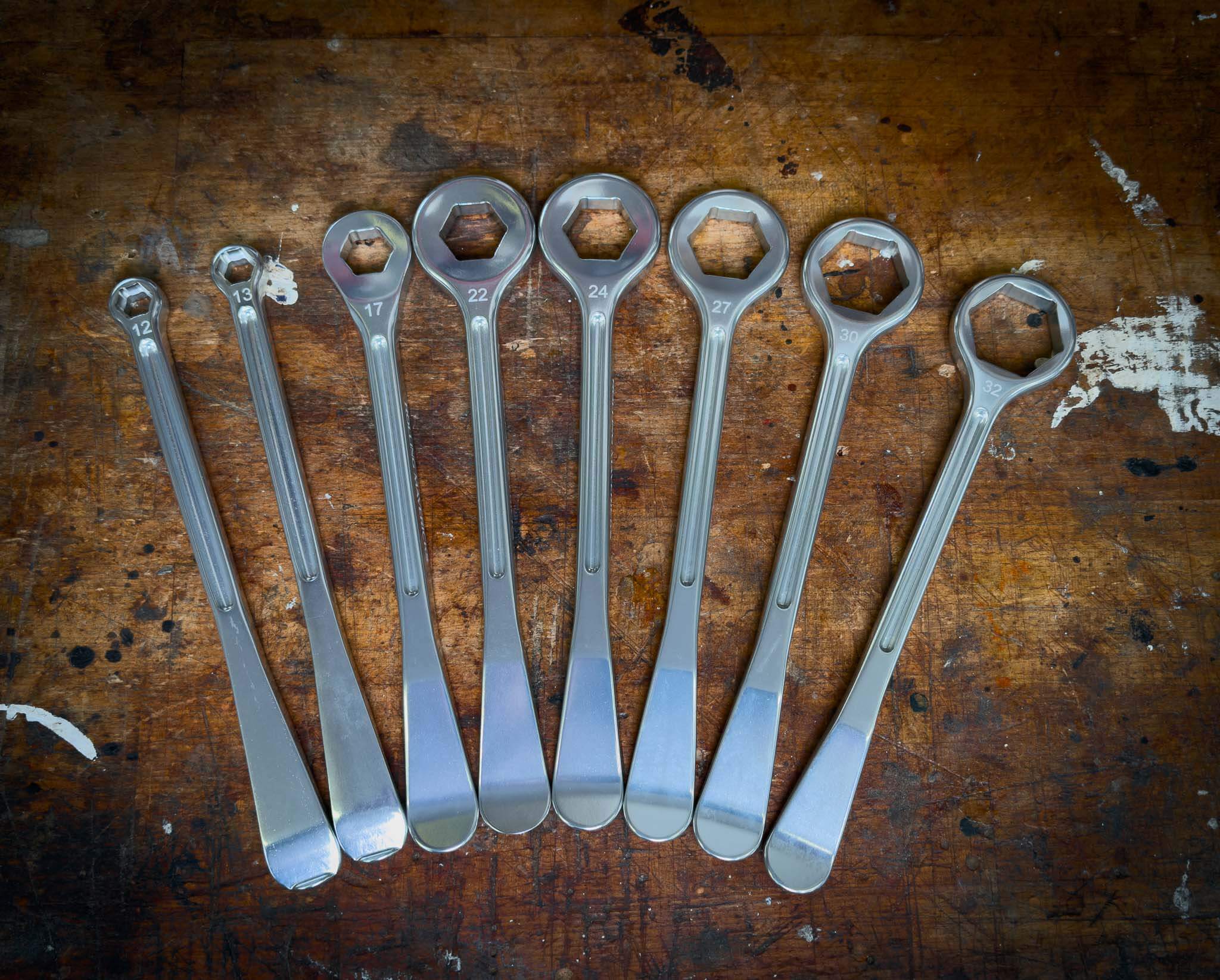 All combo levers from 17 mm on up are 244 mm (9.6 inches) long and fit any 250 mm (10-inch) tool roll, which also fits the Rolling Mavericks Ultralight Enduro Trail Jack Stand.