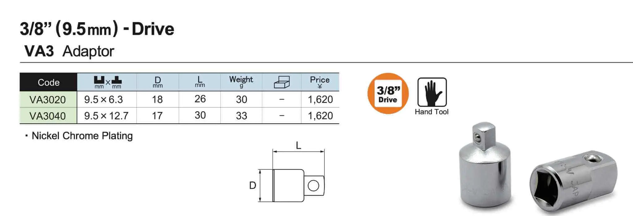 Aceste adaptoare de priză Asahi de calitate, fabricate în Japonia, transformă mânerul pentru clichet de 3/8" într-un clichet de antrenare de 1/4" sau 1/2", astfel încât să puteți folosi o varietate de dimensiuni de priză. Funcționează excelent cu Clichet Asahi LIGHTOOL 3/8", care vă economisește cu până la 40% din greutate.