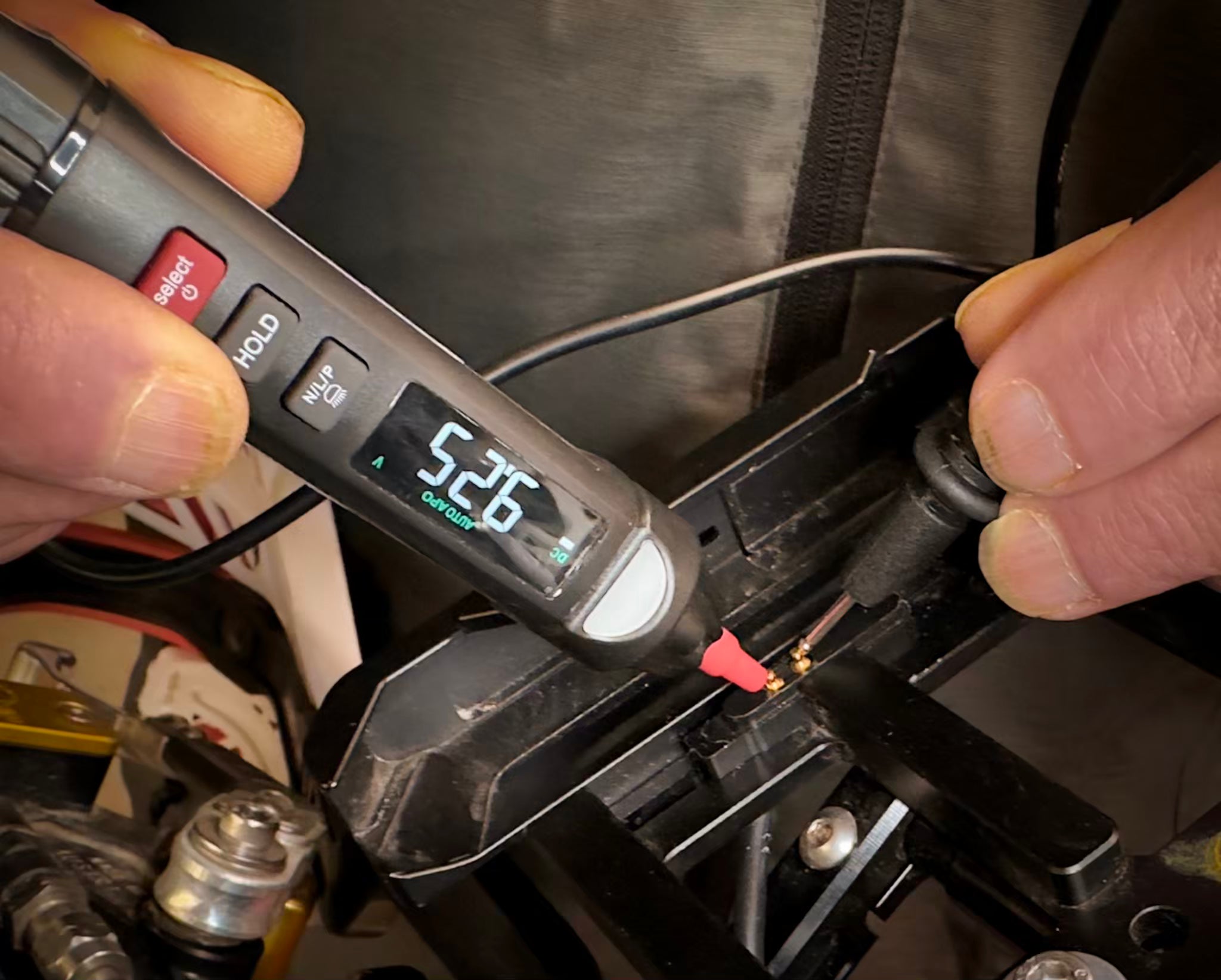 Acest multimetru tip stilou se potrivește natural în mână, la fel ca o șurubelniță sau o cheie, făcând mult mai ușoară măsurarea tensiunii, rezistenței și continuității, păstrând afișajul la vedere. Fără să mai întorci capul sau să te încurci cu firele separate! Și dacă vizibilitatea este o problemă? A3009 anunță măsurătorile cu voce tare — astfel, chiar și în lumină slabă sau spații strâmte, știi exact ce se întâmplă cu sistemul electric al motocicletei tale.
