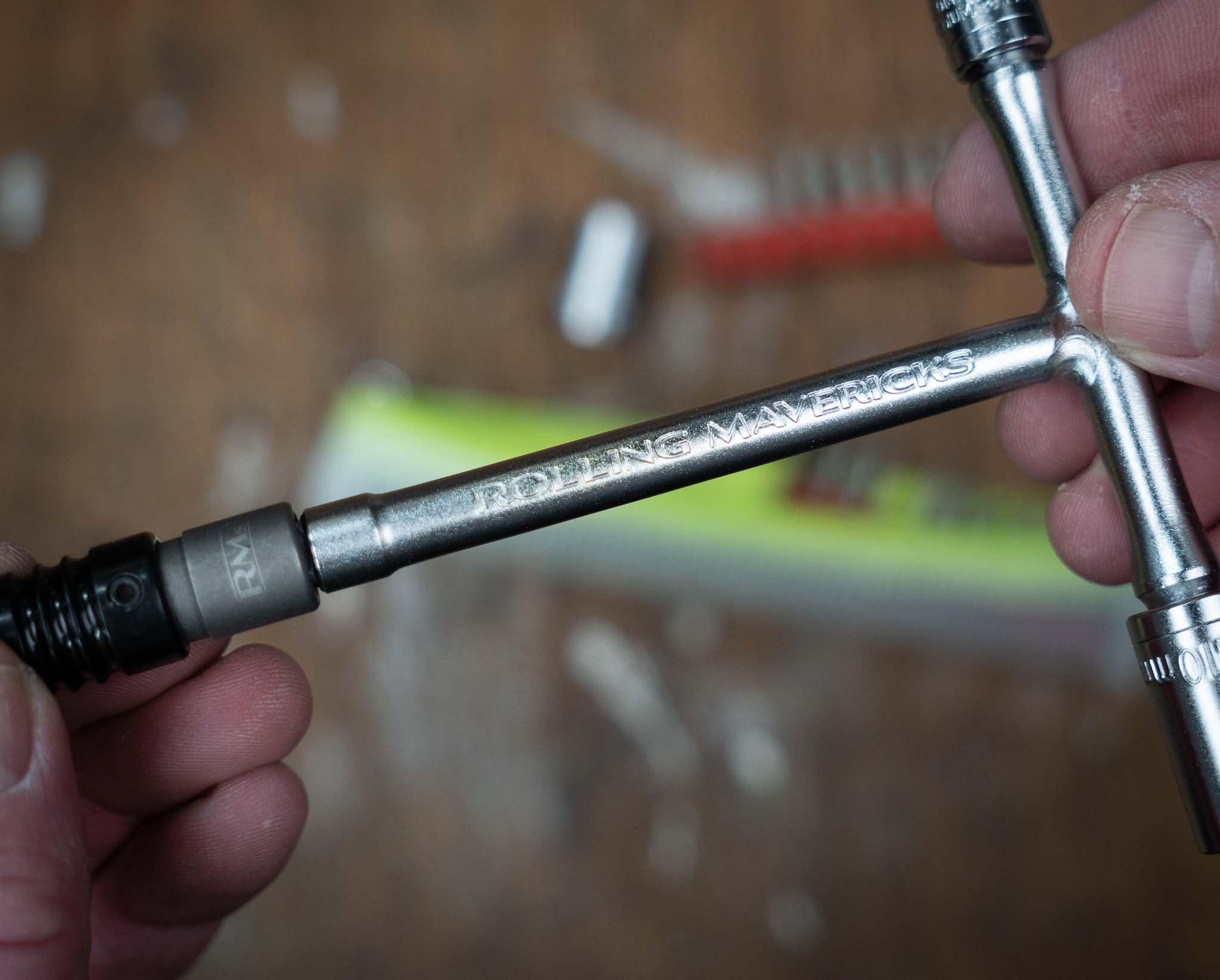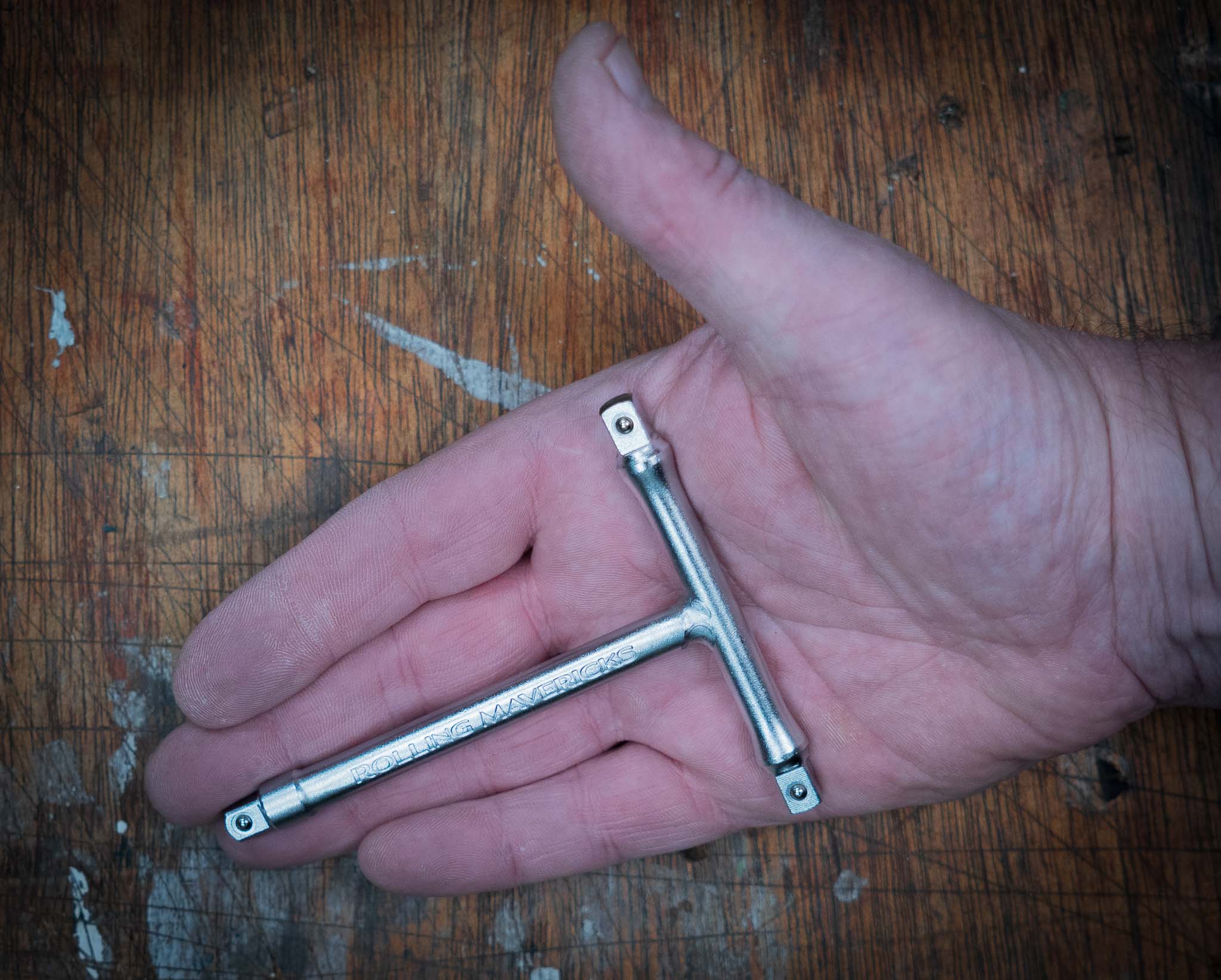 Conceput pentru motocicliștii care cer unelte ultraușoare, ultra-compacte, fără a compromite performanța, Kit Rolling Mavericks 1/4" Tri-Drive Ultralight Mini T-Handle este cel mai scurt și ușor mâner T Tri-Drive de pe piață și include chei tubulare de 8, 10, 12 și 13 mm.