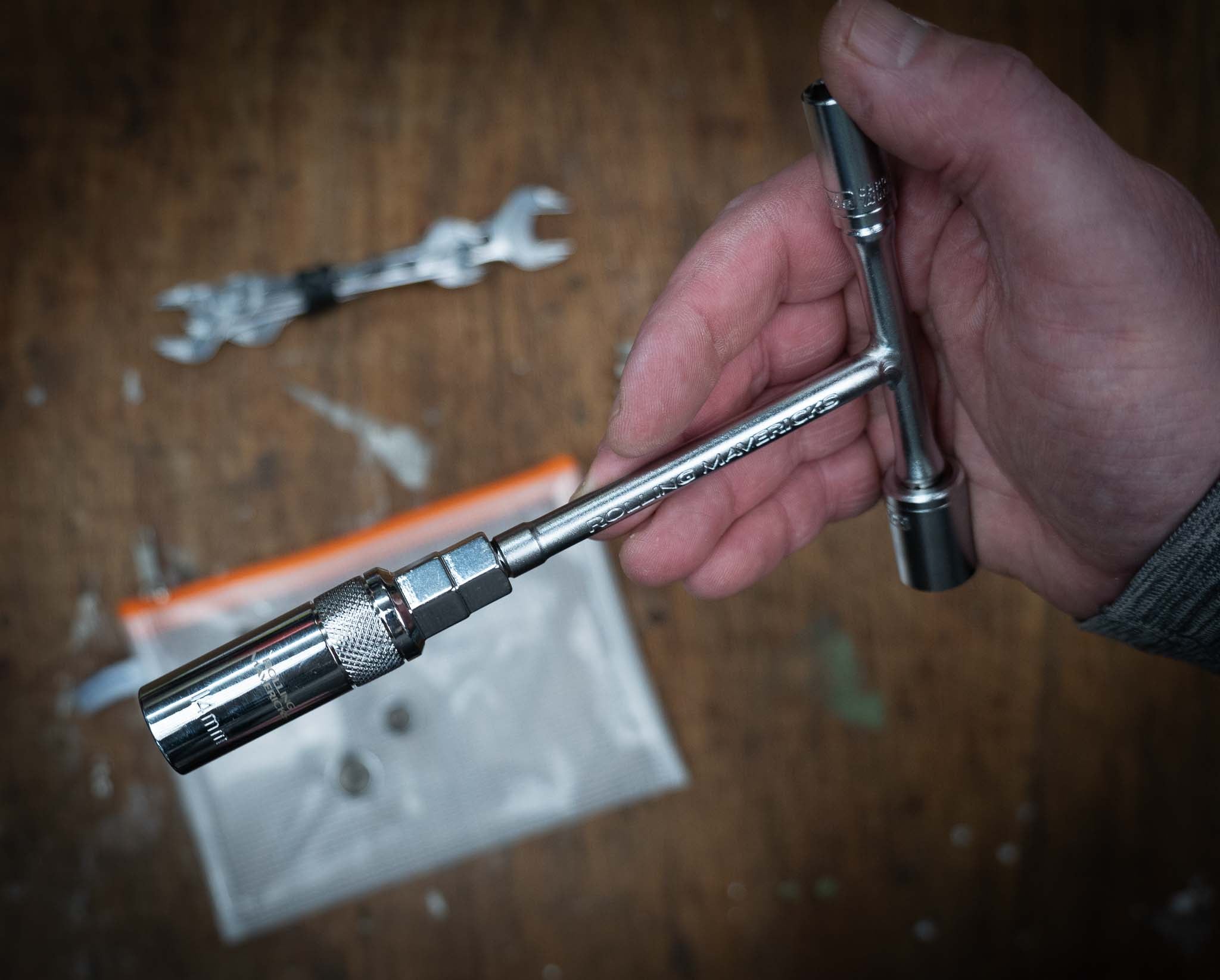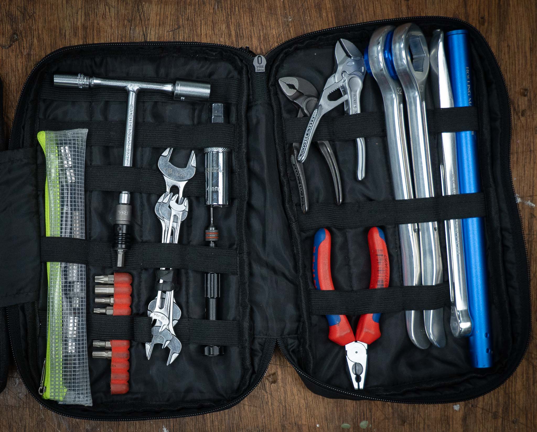 Kitul include chei tubulare de 8, 10, 12 și 13 mm, acoperind elemente de fixare europene și japoneze. De exemplu, în timp ce șuruburile europene M8 au cap hexagonal de 13 mm, cele japoneze M8 folosesc 12 mm. Dacă preferați o greutate și mai mică, alegeți doar cheile tubulare de care aveți nevoie sau păstrați ambele pentru a ajuta alți motocicliști cu configurații diferite.