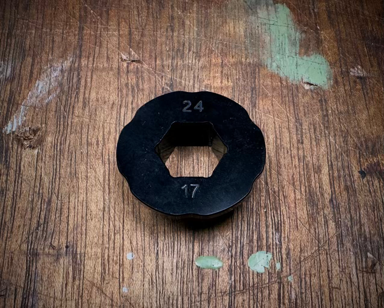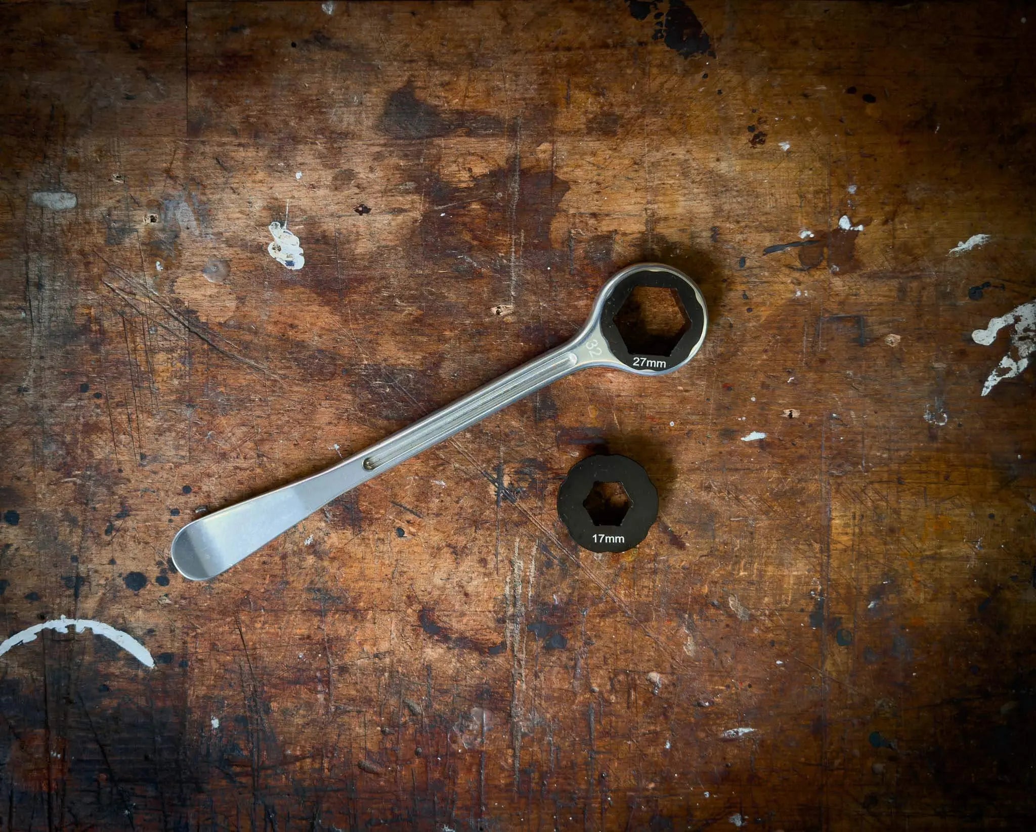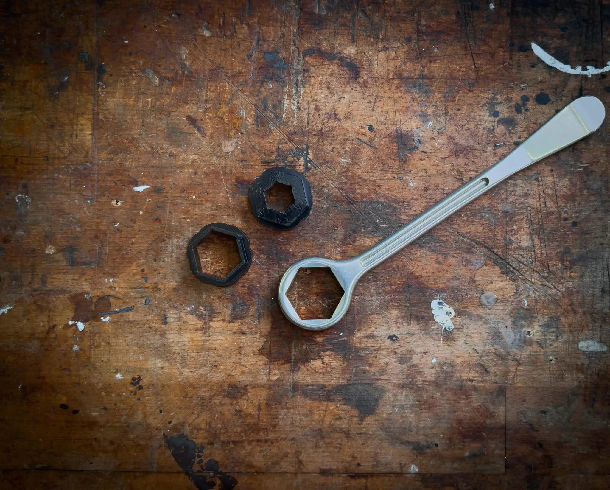 Aceste adaptoare hexagonale din aluminiu se potrivesc în interiorul manetei de anvelope Rolling Mavericks T6 Combo de 32 mm, transformând cheia de 32 mm într-o unealtă cu piulițe de axă cu mai multe dimensiuni, economisind greutate.